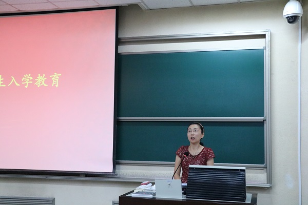 王卓凯老师为同学们做学生工作教育。王老师首先对新同学的到来表示热烈欢迎。她用生动形象的事例,风趣幽默的语言向同学们介绍了历史学院学生工作的基本组成和运作情况,并期望广大新生合理分配时间、学术与活动并重以及妥善处理人际关系。