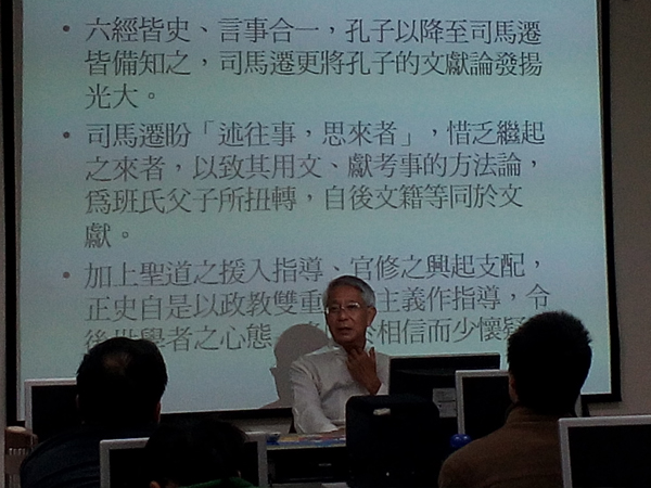 2015年10月29日下午3时至5时,台湾中正大学历史系雷家骥教授在主楼B604作了题为《儒家的“历史文献主义”及其相关问题》的学术讲座。讲座由中国古代史教研室主任宁欣教授主持,我院赵贞老师、陈涛老师及院内外学生数十人到场聆听。