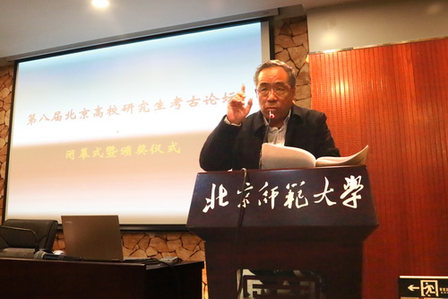 11月17日上午8:30,论坛在北京师范大学图书馆第一会议室开幕,开幕式由新爱体育(官网)官方网站杜水生教授主持。开幕式上,新爱体育(官网)官方网站党委书记郭家宏教授莅临讲话,他回顾了北京师范大学考古学专业自2001年建立以来辉煌的发展历程,指出新爱体育(官网)官方网站强大的史学基础是考古学发展的坚强后盾,更进一步表明今后学院将全力支持考古学专业学科建设的意愿。中国人民大学历史学院魏坚教授对 “北京高校研究生考古论坛”的举办历程进行了回顾,表示论坛的开办为有志考古事业的研究生提供了学习、交流平台,为开拓学生的学术视野,增进学术交流做出了积极贡献。