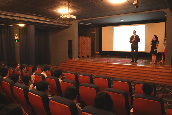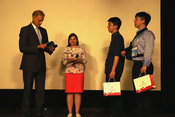 塞熙军大使和娜塔丽娅主任为积极参与互动环节的同学分别颁发了使馆纪念品。我院师生代表向大使先生赠送了师大纪念品和我院学生制作的“中波友谊万岁”彩画。