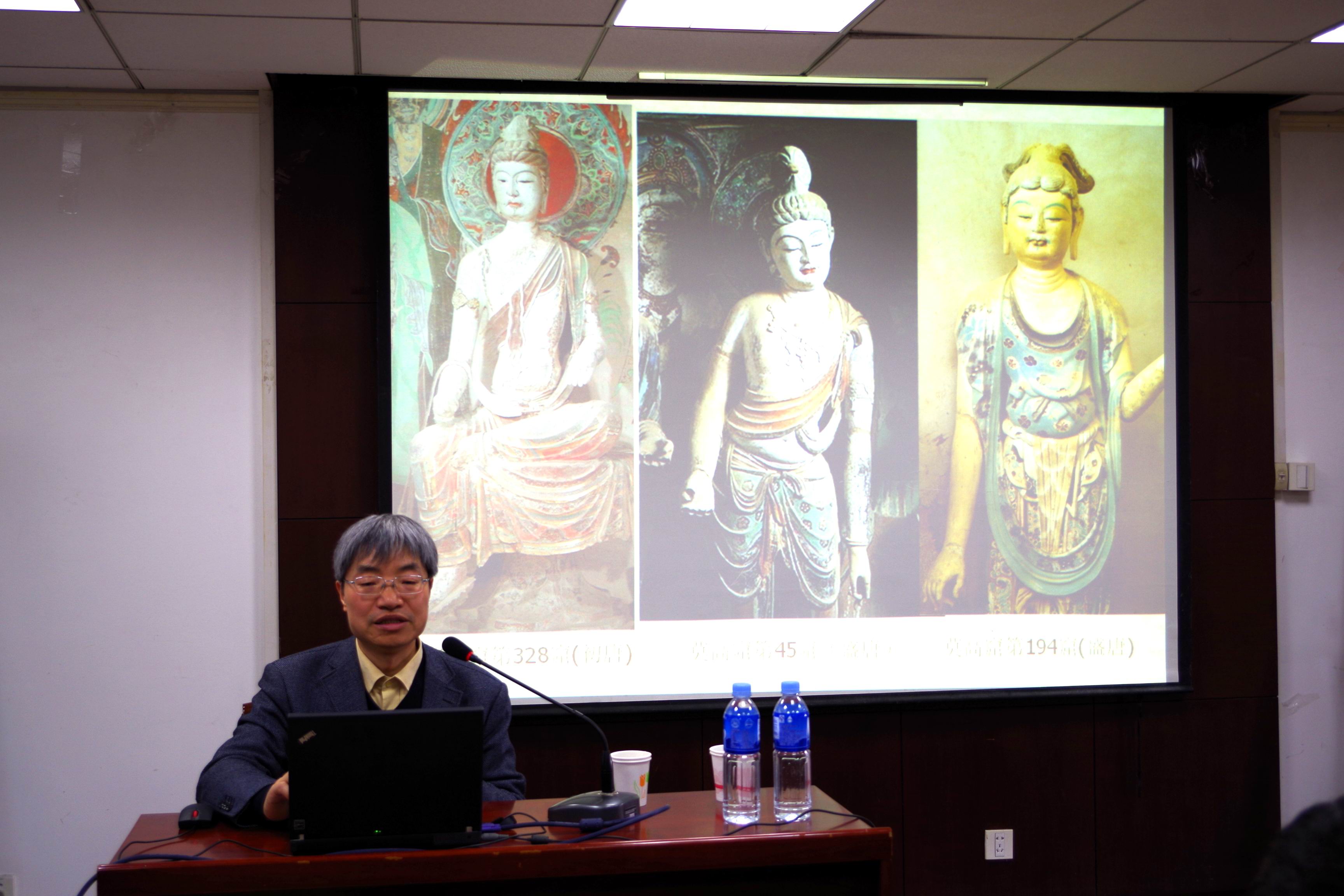 赵声良先生结合自己对英国、法国、美国、俄国、日本、印度、中国台湾等海外地区进行佛教艺术考察的成果,对中国佛教艺术中的印度影响这一课题作了新的解读。讲座中不仅大量展现来自印度佛教石窟建筑和佛教造像、壁画的图像资料,还为我们呈现了英、美等国博物馆收藏的珍贵资料,可谓是一场美轮美奂的视觉盛宴。