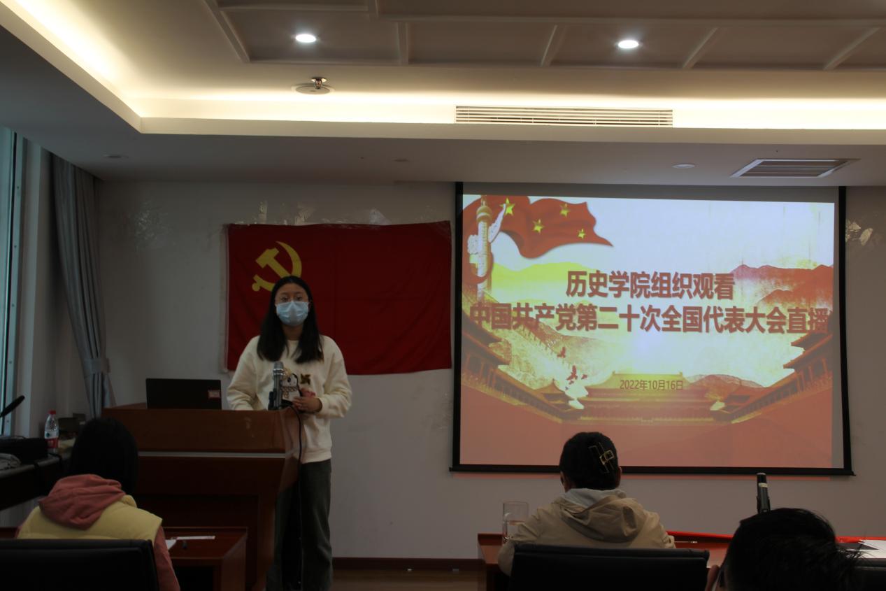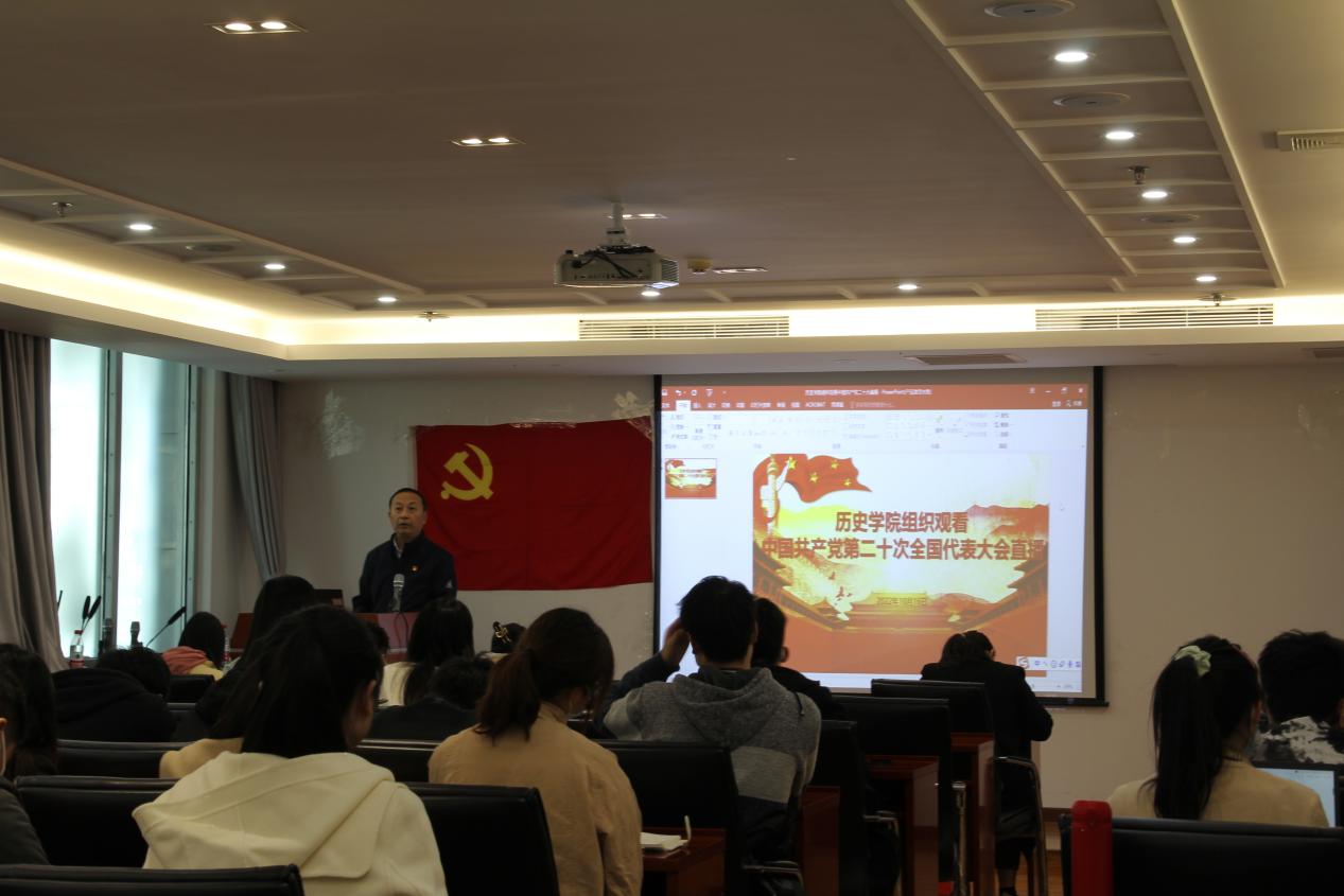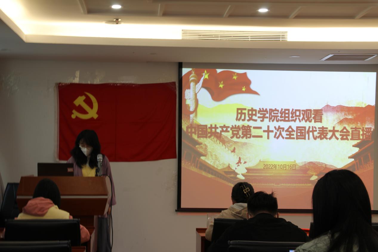 2022年10月16日上午,举世瞩目的中国共产党第二十次全国代表大会在人民大会堂隆重开幕。这是我们党进入全面建设社会主义现代化国家、向第二个百年奋斗目标进军新征程的重要时刻召开的一次重要会议,是党和国家政治生活的一件大事。历史学院组织师生集体观看此次开幕盛会,学院党委书记耿向东、党委副书记赵云慧、团委书记胡小溪、专职组织员潘若天等老师与学院党、团学生骨干齐聚600会议室,共同收听收看党的二十大开幕会,认真学习领会大会精神。