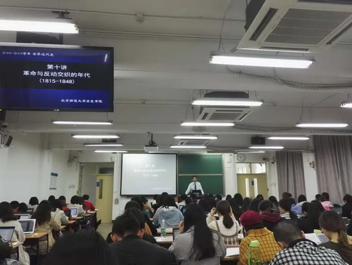 青年教师课程教学观摩及研讨,是历史学院从2014年以来每年举行的重要的教学交流与研讨活动。11月6日上午,历史学院在教学副院长姜海军老师的组织下,召请新进入职的十多位青年教师,到教二观摩了江天岳老师的“世界近代史”课程。