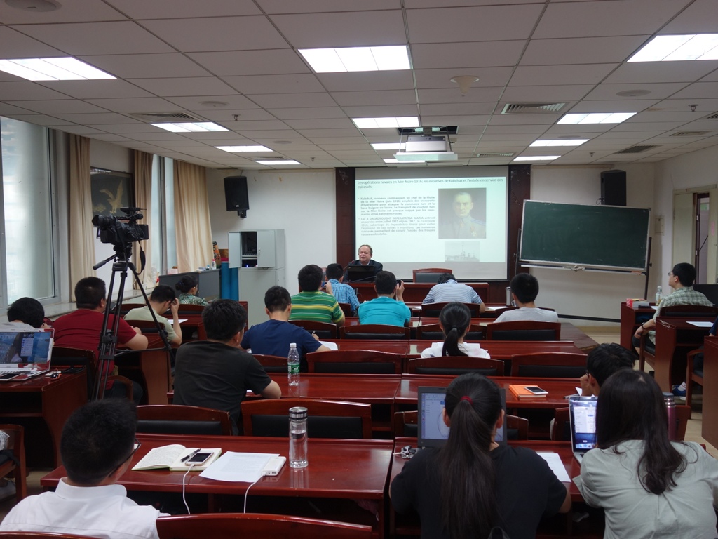 杜普莱教授与我院始终保持着紧密友好的交流关系,已连续七年应邀为我院学生讲学,广受师生好评。2010年9月30日-10月3日,杜普莱教授曾应邀来新爱体育(官网)官方网站讲学,并作了题为《从档案资料看二次鸦片战争中法国海军的活动》的讲座;2011年12月7日,为我院学生作了题为《潜水艇和航空母舰对20世纪国际关系的影响》的讲座;2012年9月24日,为2011级本科学生作了题为《风帆时代的海上力量与国家》的讲座;2013年11月28日,为2012级本科学生作了题为《1897-1914年的英德海军竞赛》的讲座;2014年9月14日,以第一次世界大战爆发一百周年为契机,为我校师生做了题为《第一次世界大战中的法国海军》的专题讲座;2015年12月11日,为2014级本科生作了题为《走向无畏之海——铁甲舰时代的法国海军》的讲座。