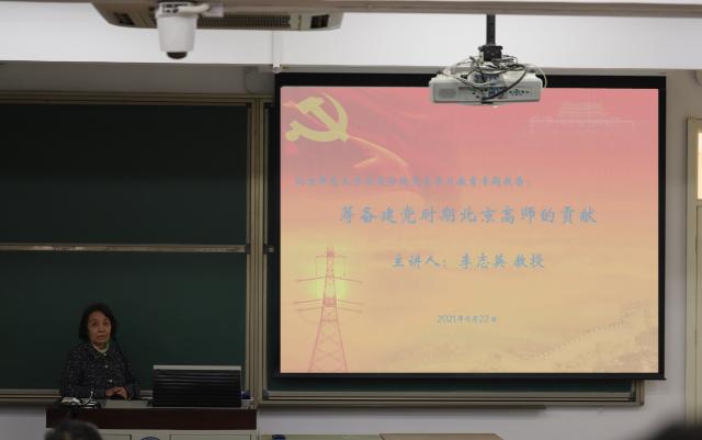 接着,邀请李志英老师做了“筹备建党时期北京高师的贡献”专题报告。李老师指出,北京高师是五四运动的策源地之一,在五四爱国运动中,北京高师的学生发挥了重要的关键性作用。李老师从北京师范大学党支部的创建史出发,进一步提出学习革命传统、坚定理想信念的重要性。她强调要坚定理想信念,坚守共产党人精神追求,并指出要学习以下三种精神:1.对国家、民族命运的深切关怀和义无反顾投身其中的精神;2.追求真理的探索精神;3.不怕牺牲冲锋在前的精神。李老师采用丰富、生动的一手史料,从学术的角度,深入阐述了筹备建党时期北京高师的历史贡献,受到全体教师的热烈欢迎。