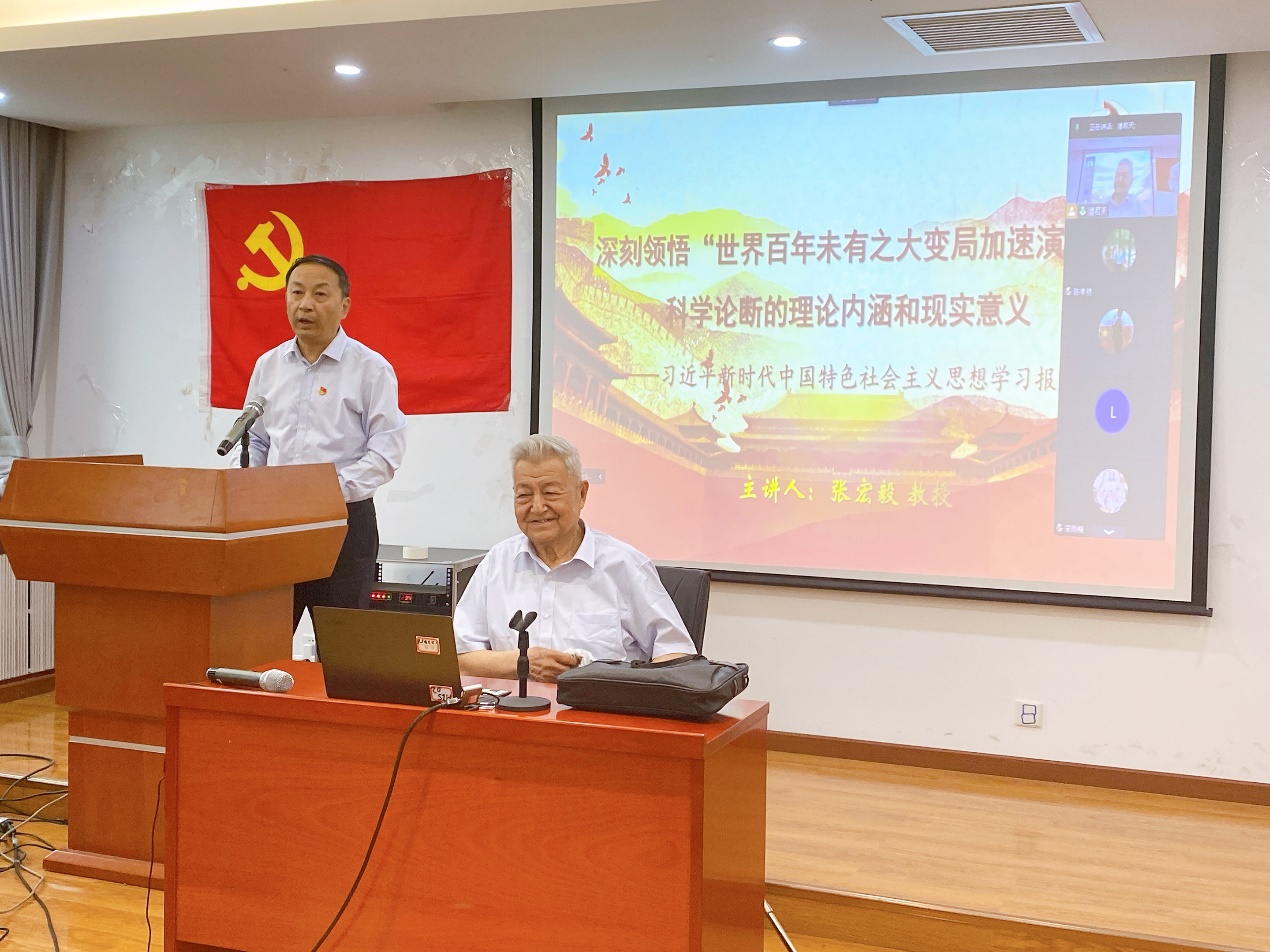 2023年5月23日下午,历史学院二级党校开展学习贯彻习近平新时代中国特色社会主义思想主题教育专题培训,由著名世界现代史和国际关系史研究专家、北师大历史学院教授张宏毅应邀为学院师生党员作题为《深刻领悟“世界百年未有之大变局加速演进”科学论断的理论内涵和现实意义》的学习报告。党委书记耿向东主持报告。学院党政班子成员、师生党员代表在线下参加了讲座。