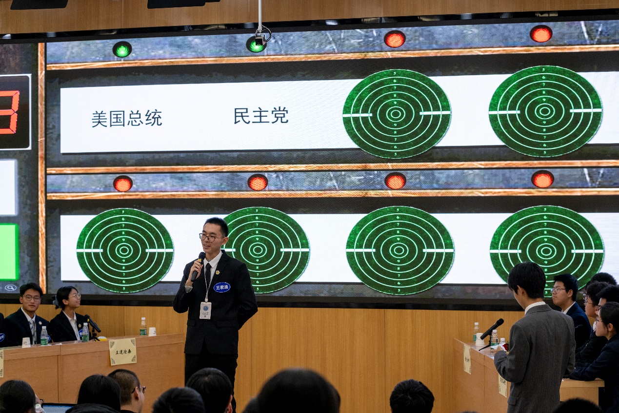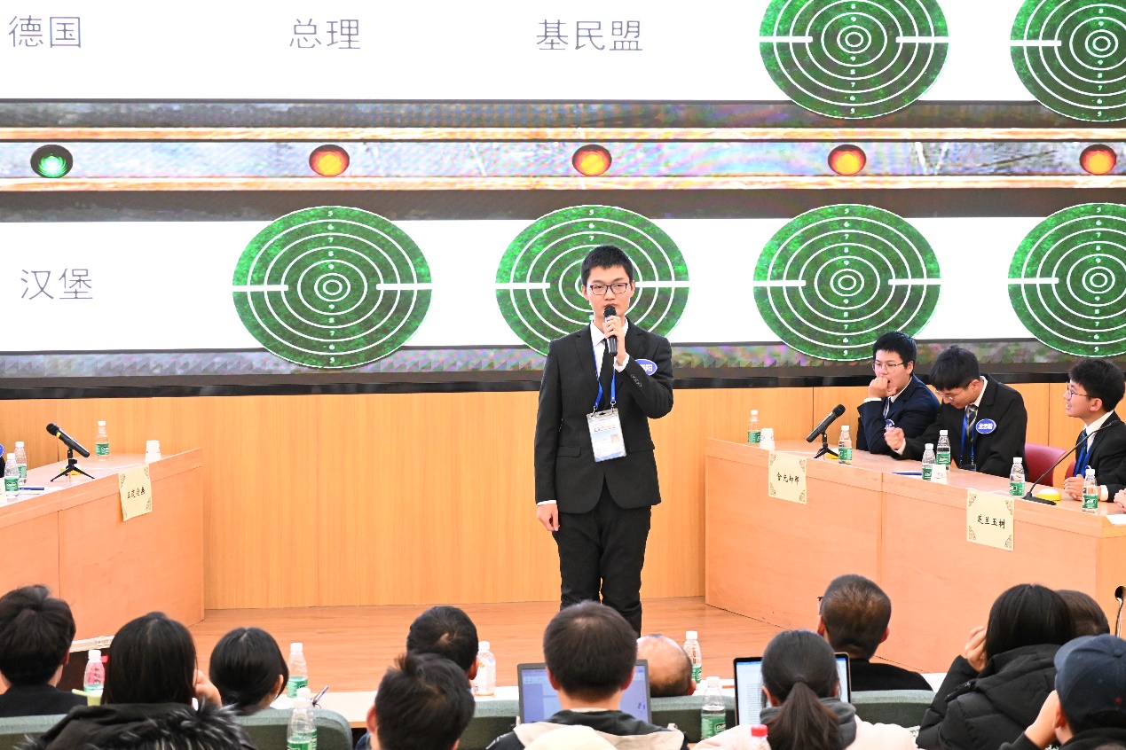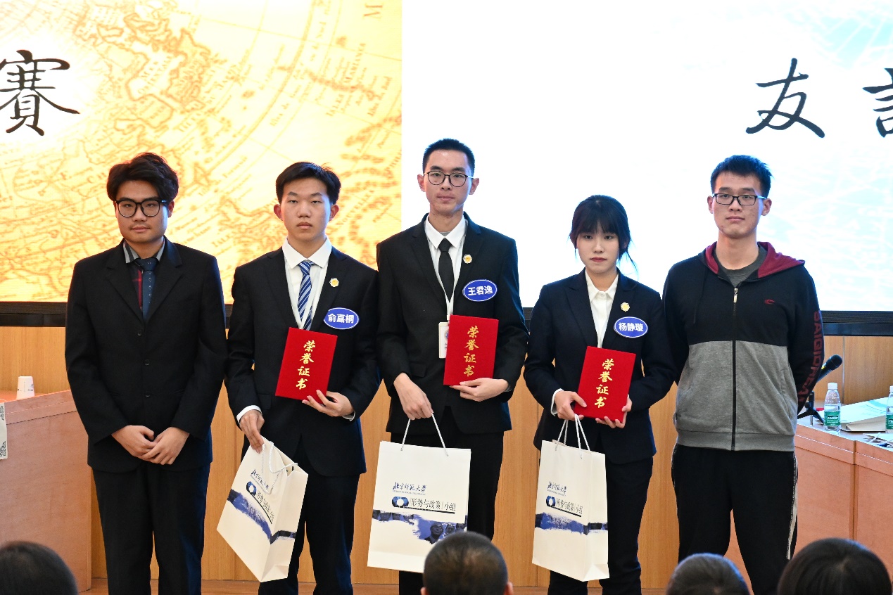 经选拔,本次比赛共有四支代表队参加,分别是来自国际关系学院的1号正道沧桑代表队、2号观古知今代表队和来自北京师范大学的3号芝兰玉树代表队、4号含光却邪代表队。