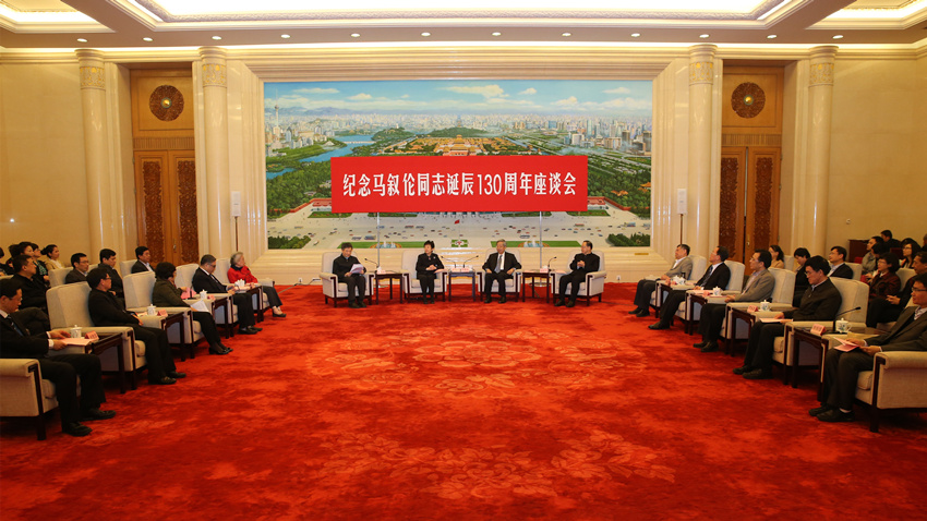 马叙伦先生女儿马珮,全国人大常委会委员、民进中央副主席刘新成,全国政协副秘书长、民进中央副主席朱永新,全国政协教科文卫体委员会副主任、北京市原副市长、北京奥运城市发展促进会常务副会长刘敬民,教育部副部长李卫红,中共中央统战部一局局长桑福华,民进中央秘书长高友东,民进北京市委会常务副主委李焕喜,以及我院副教授林辉锋出席座谈会。