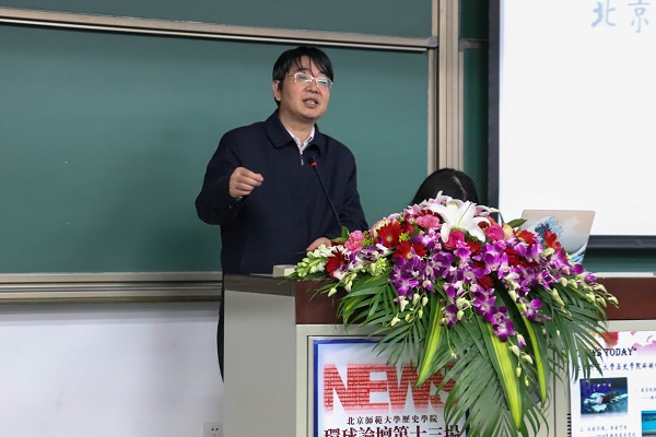 12月16日,“News Today”新爱体育(官网)官方网站环球论坛第十三场在我校隆重举行。我校历史学院院长杨共乐老师,历史学院世界近现代史研究中心主任张建华老师、世界近代史教研室教授陈奉林老师、世界现代史教研室主任安然老师、世界近代史教研室贾珺老师,历史学院考古与博物馆学教研室教师、2018级本科班班主任丁雨老师,历史学院分团委书记胡小溪老师,历史学院学生事务助理、2018级本科班班主任胥晨曦老师等嘉宾莅临现场。第十六届北京师范大学“十佳大学生"获得者、历史学院张俊毅同学,历史学院学生会主席张墨润同学,哲学学院学生会主席吴双同同学应邀出席了本次活动。国际关系学院、北京外国语大学的学生代表也参加了此次活动。本次活动作为我校“形势与政策”课程的实践环节,共有约100名本科生前来旁听。