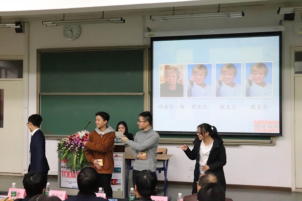 第一组代表、历史学院2018级王冰同学展示的主题是《英国脱欧——难以出鞘的双刃剑》。她向观众们娓娓道来,从英国脱欧的历史渊源讲到目前脱欧的主要进展与面临的困难,并以视频的形式展示了英国政府在脱欧问题上可能面临的四种情况。她指出:英国脱欧的背后既有传统孤立的价值观意识影响,又有当今盛行的民粹主义思潮推动;既有精英阶层的个人利益诉求在背后作祟,又有基层民众不理性的政治参与推波助澜,英国的未来最终只能由英国人自己决定,而回归理性才是解决问题的真正途径。该组展示融入了极富新意的情景剧,几位同学生动有趣的表演让观众们更加直观地理解了英国脱欧的困难之处,也使现场的气氛更加轻松愉快。