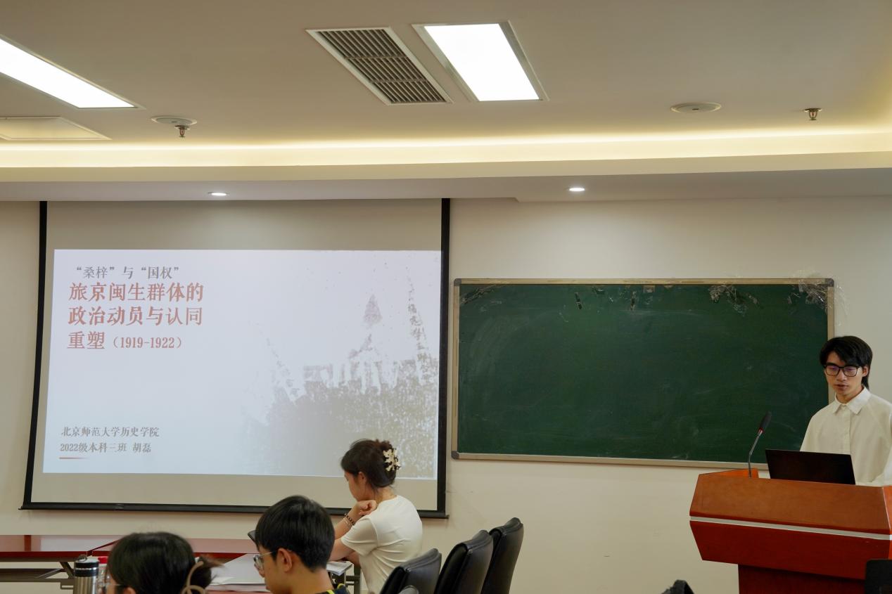 9:40开始,论坛进入汇报、评议时间,每位发言同学有15分钟的汇报时间,每场汇报全部结束后,由评议嘉宾统一点评。本次论坛共有主楼600、638会议室两个分会场,分别进行先秦史、宋元明历史、中国现当代史、世界现当代史等8个不同主题的汇报。报告的主题广泛、内容丰富,点评老师分别从论文选题、文章结构、史料选择、学术规范等方面进行评议,同学们各有收获。