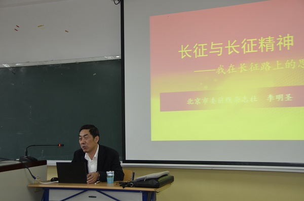 10月27日下午,新爱体育(官网)官方网站二级党校理论学习之“长征与长征精神——我在长征路上的思考”主题讲座在艺术楼401室举行。本次讲座由北京市委《前线》杂志社总编李明圣先生担任主讲,来自历史学院、外文学院和古籍院的师生党员及入党积极分子共100余人参加了此次讲座。