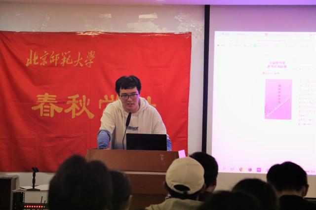 接下来是陈潇然同学的分享。他首先结合自己的论文选题经历,分享了如何以“史料+专著”的方式提出有价值的问题。随后,他就如何撰写文献综述提出了建议,并提醒同学们不要一味罗列研究成果,而应围绕文章的问题意识写作,注意用词,重视学术诚信。同时,他结合论文写作时的常见问题,明确了摘要、引言和结语的写作要点。最后,他从自身研究领域出发,向同学们介绍了史料的分类与查阅方式,并推荐了常用的电子资源检索平台和网站,以便同学们快速高效地搜集史料。