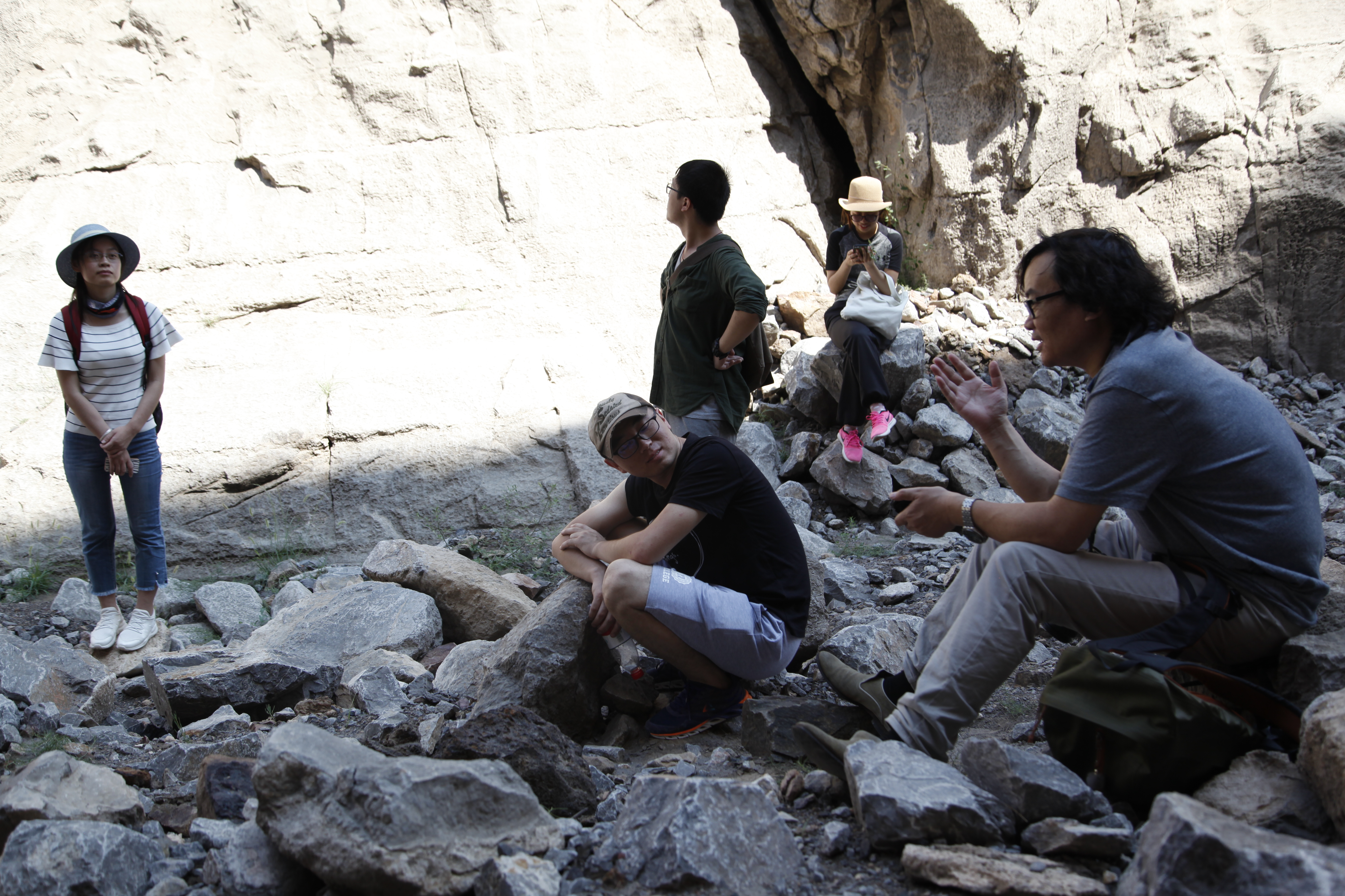 从西夏王陵出来后,考察队伍乘车来到了贺兰山岩画景区。考察队伍在入口处遭遇到突如其来的阵雨袭击,在大雨过后考察队伍继续前行。贺兰山在古代是北方许多游牧民族的栖息繁衍之地,因此在考察过程中考察队伍的成员们发现了许多描绘狩猎游牧的岩画图案,特别是关于羊、鹿等动物的图案尤其丰富;另外,此处也是远古人类生活的区域,在这里留下了许多关于原始信仰和崇拜的岩画内容。