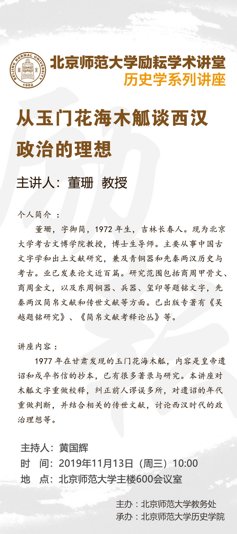 【励耘讲堂】董珊:从玉门花海木觚谈西汉政治理想