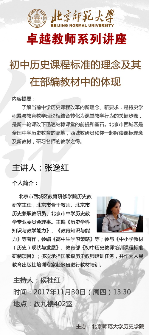 【教育名师讲堂】张逸红:初中历史课程标准的理念及其在部编教材中的体现