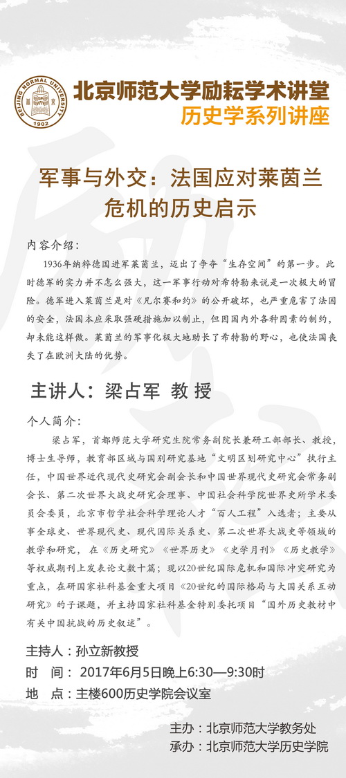 【励耘讲堂】梁占军:军事与外交:法国应对莱茵兰危机的历史启示