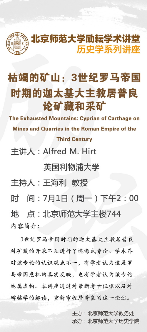 【励耘讲堂】Alfred M. Hirt :枯竭的矿山:3世纪罗马帝国时期的迦太基大主教居普良论矿藏和采矿