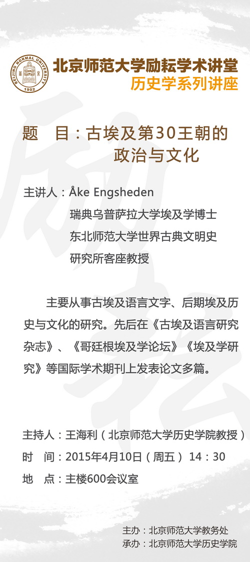 【励耘讲堂】Ake Engsheden:古埃及第30王朝的政治与文化