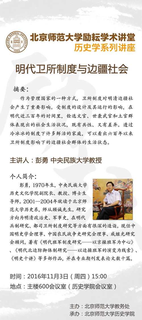 【励耘讲堂】彭勇:明代卫所制度与边疆社会