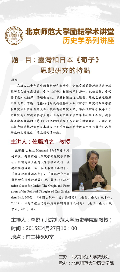【励耘讲堂】佐藤将之:台湾和日本《荀子》思想研究的特点