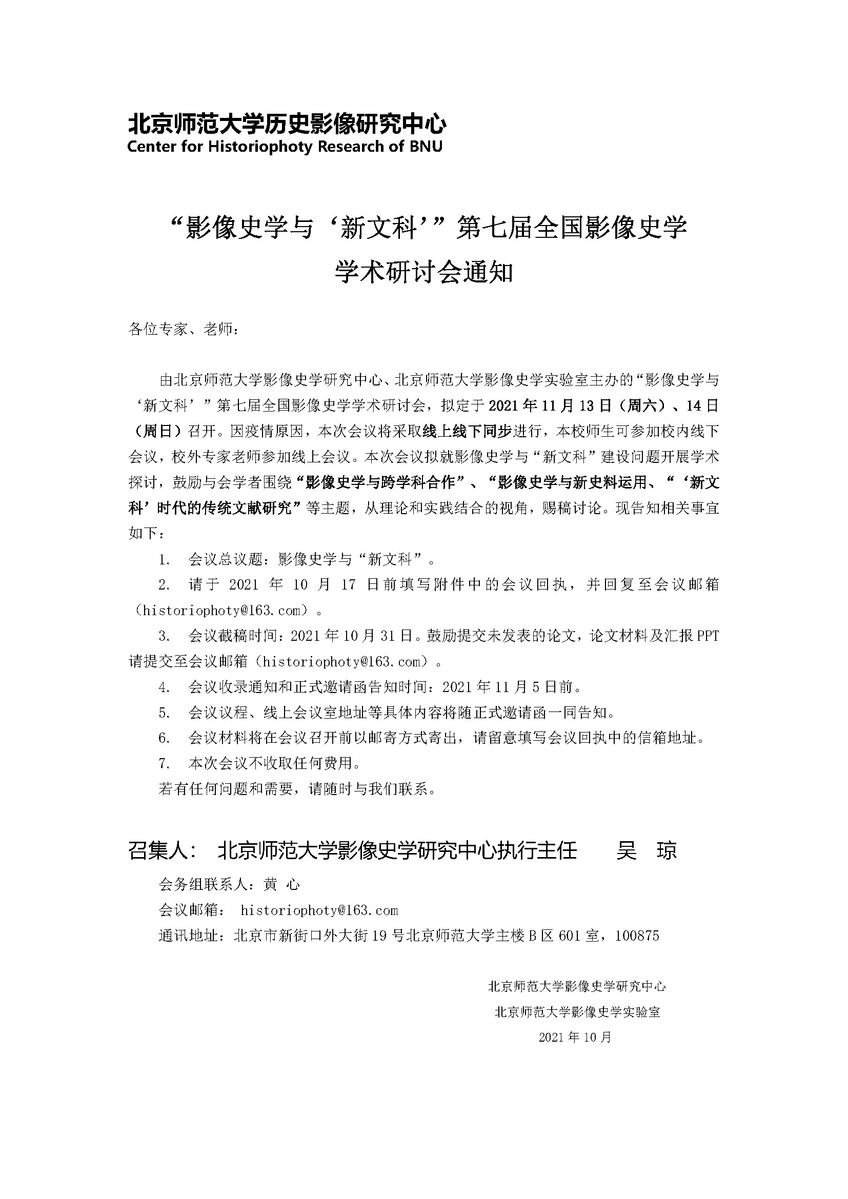 “影像史学与‘新文科’”第七届全国影像史学学术研讨会通知