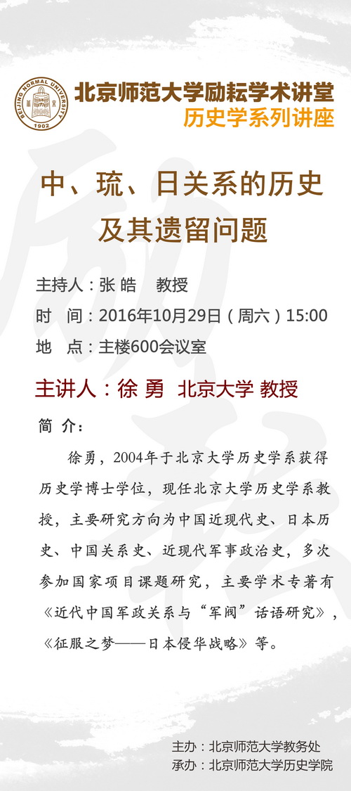 【励耘讲堂】徐勇:中、琉、日关系的历史及其遗留问题