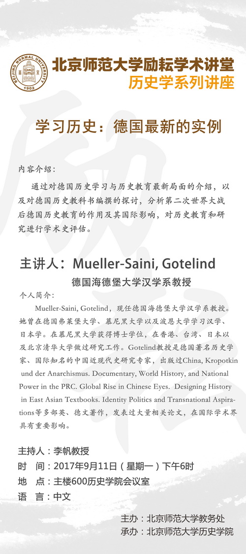 【励耘讲堂】顾德琳:学习历史:德国最新的实例