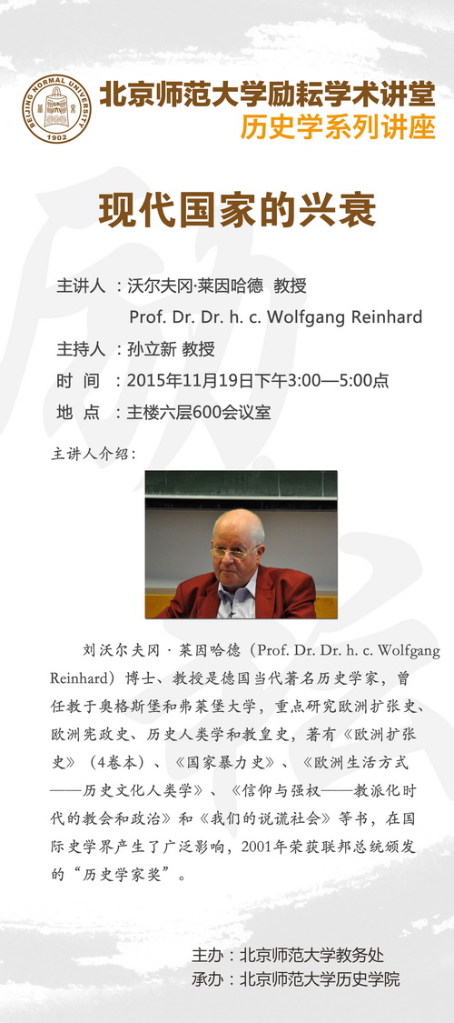 【励耘讲堂】沃尔夫冈·莱因哈德:现代国家的兴衰