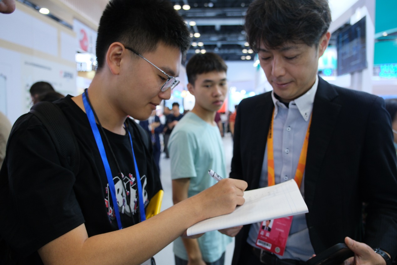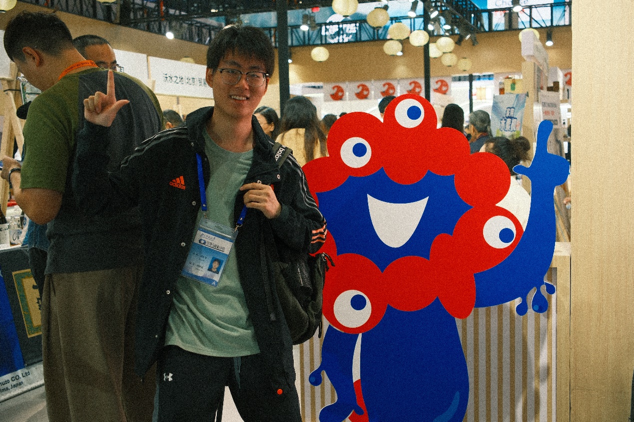 走进另一大展馆——日本馆,即将在明年举办的大阪世博会成为了展出重点。不仅世博会吉祥物“脉脉”亮相展馆,日本驻华大使金杉宪治也亲临现场推介世博会,呼吁以世博会展现日本的多样性和创新能力,并由此促进中日两国的交流。小组2024级院系联络员高元同日本友人进行了友好交流。高同学祝愿同为东亚国家的中日两国友谊长青,也希望中国能在大阪世博会中向世界展示我们的文明与进步。日本嘉宾对高元同学给予了充分的肯定和赞同。