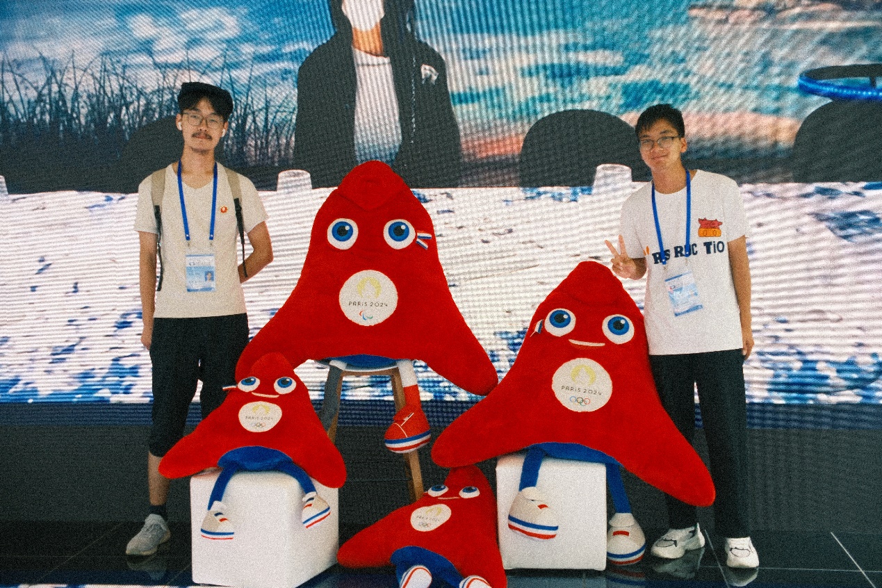 今年是中法建交60周年,法国也首次成为服贸会的主宾国。在一块播放法国遗产、景观、体育赛事和法国品牌视频的屏幕前,2024年巴黎奥运会吉祥物“弗里热”(Olympic Phryge)则成为了小组成员们合影留念的好伙伴。