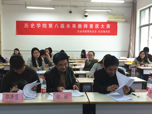 2015年4月19日14时,由历史学院研究生会、生活指导室联合举办的第八届“春晖杯”教师风采大赛在教二拉开帷幕。初赛分别于教二214、215教室设立了分赛场,学院共有16位研究生参加了比赛。大赛邀请到了历史学院历史教育教研室主任马卫东教授、历史教学论教研室主任郑林教授、大峪中学宿春娣老师、原北京101中学现我院博士后李凯老师、我院2012级硕士北京十一学校一分校新晋教师邵泽慧、我院2012级硕士北方交通大学附属中学新晋教师王信作为嘉宾评委。
