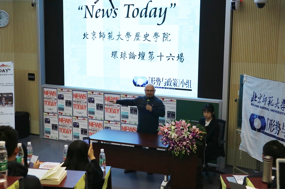 “News Today”新爱体育(官网)官方网站环球论坛是历史学院依托“形势与政策”小组推出的一项特色精品活动,自2006年以来已连续举办十六场。活动中,学生自主选择感兴趣的国内国际时事话题进行分组主题展示,并邀请历史学院的教授学者进行专业点评。在论坛上表现出色的同学将有机会以“学生进课堂”的形式为全校本科生授课。环球论坛拓宽了同学们的视野,培养了团队协作能力,也对外展示了北师大学生博古通今、胸怀天下的国际视野,在北师大乃至北京市高校范围内产生了广泛的影响。