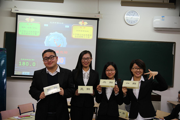 2016年11月13日上午9时,北京师范大学第十一届研究生辩论赛第一轮晋级赛在教二217教室顺利举行。这届辩论赛中,我院和心理学院携手准备,实现了强强联合。比赛中,历史—心理学院联队和水科学研究院队分别作为正反方围绕“大学排名对高等教育的发展利大于弊还是弊大于利”的主题展开辩论,最终历史—心理学院联队战胜对手,成功取得首场比赛的胜利。