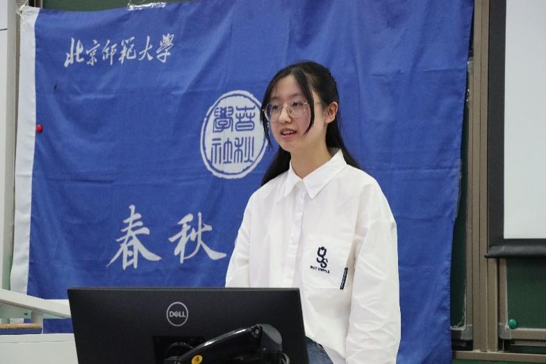 最后,社长江怡慧同学进行了发言。她回顾了自己三年来在学社的成长与收获,从最初怀着对历史学的热爱加入学社,到通过积极参与各类学术活动不断提升专业能力、深化学术兴趣。在这段难忘的旅程中,她特别感恩学社这个充满历史底蕴和人文温度的大家庭给予的滋养,希望大家在社团工作中始终怀抱对历史学的热忱,传承学社友爱互助的精神,共同书写春秋学社更精彩的明天。
