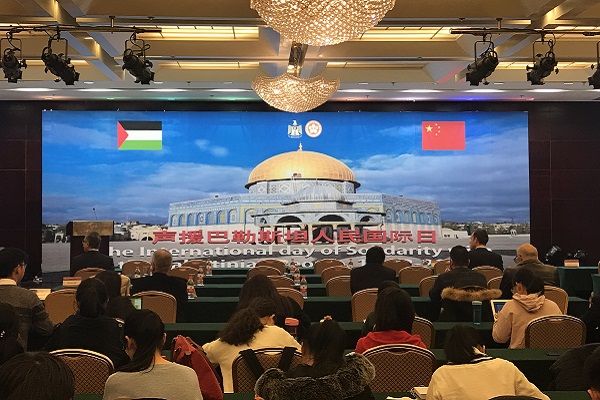 外交部部长助理陈晓东代表中方致辞,他在致辞中指出“两国方案”凝聚了巴以、阿拉伯国家以及国际社会的共同智慧和心血,必须坚定推进以“两国方案”为基础的政治解决。他表示中方始终坚定支持和推动中东和平进程,支持巴勒斯坦人民恢复民族合法权利的正义事业。巴勒斯坦驻华大使法里兹•马赫达维代表巴勒斯坦对中国人民长期的帮助表示感谢。联合国开发计划署高级顾问马克•范登宣读了联合国秘书长的贺信,贺信中写道联合国一直关注巴勒斯坦问题,并认为巴勒斯坦应尽快建立一个与以色列具有同等国际地位的主权国家。随后,阿拉伯驻华使团驻团长、约旦驻华大使叶海亚•卡拉莱发言,他指出耶路撒冷的归属问题是巴以之间的核心问题,阿拉伯国家希望能在符合1947年联合国关于巴勒斯坦分治的第181号决议的内容和精神的基础上,建立一个以东耶路撒冷为首都的巴勒斯坦国。最后,北京大学外国语学院副院长付志明发言,他回顾了历史上北京大学对中国与阿拉伯国家建立友好关系的推动作用,并展望未来在“一带一路”的建设中,北京大学能进一步与阿拉伯国家展开深层次的合作交流。