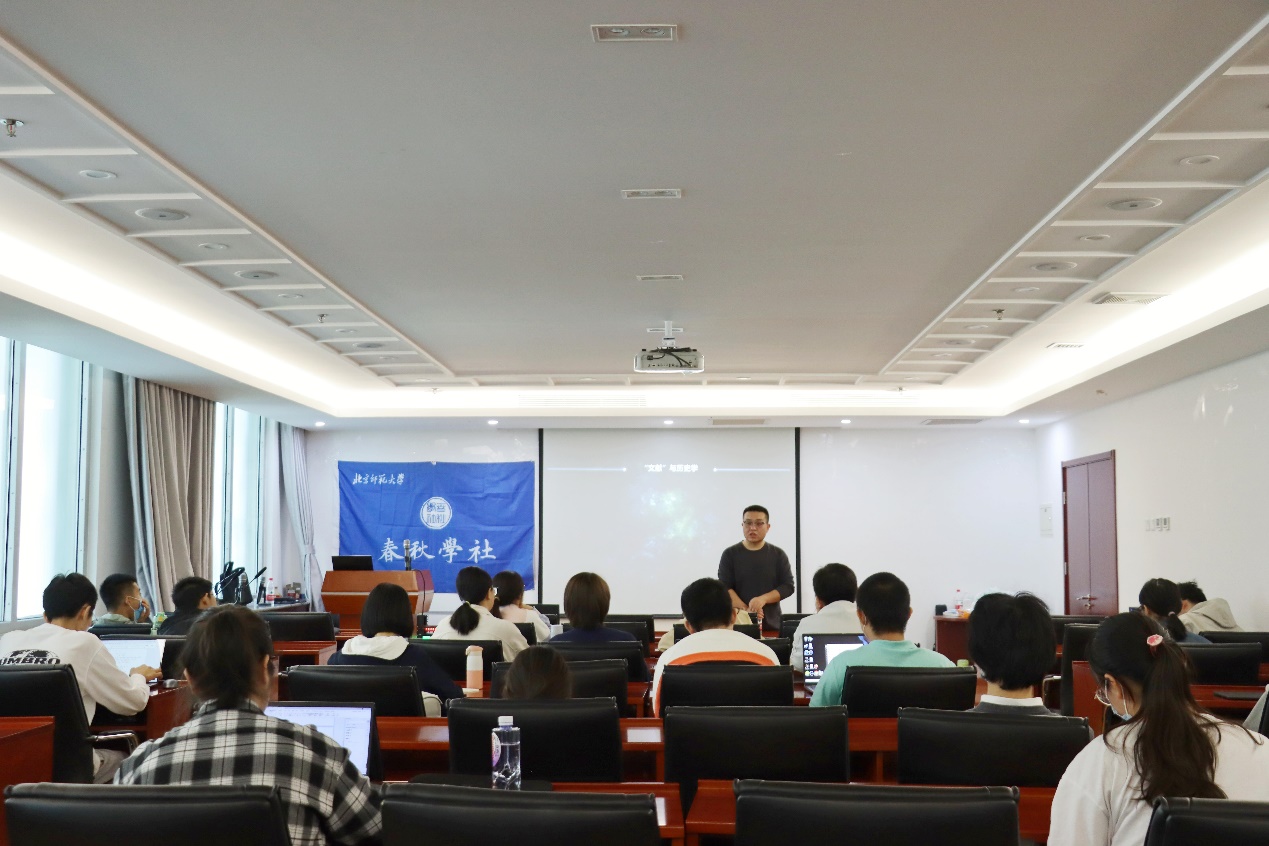首先,他以如何研究汉武帝为问题导向,指出进行文献研究的重要意义。然后,他对“文”的含义和“献”的含义分别进行探讨,以《资治通鉴》和《旧五代史》为例,引导同学们解读史料,学会罗列书籍清单挖掘问题,查找漏洞。同时,他也指出研究人是中国史学的特色,强调了活的历史在于人这一观点。最后,针对文献与历史学的关系,张弩同学指出,文与献对于历史研究具有重要意义。在研究文献的同时,我们也需要结合现实,思考历史研究对当下的意义、研究活的历史。此外,张弩同学又以音乐和数学的关系为例,建议同学们进行广泛阅读,拓宽知识面和思维广度。