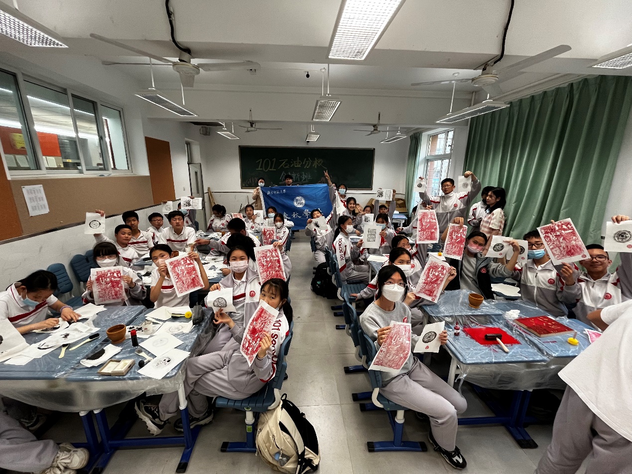 4月18日下午,春秋学社社员走进北京一零一中学石油分校,面向初一年级创新项目同学开展“纸墨留影:拓印和雕版印刷体验课”,以寓教于乐的方式弘扬和传承中国优秀传统文化。
