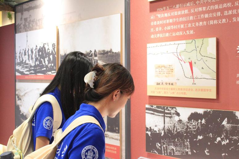 9月5日,实践队赴天津地区开展实地调研。天津是中国共产党早期革命活动的重要地区之一,在中国共产党的创建过程中发挥着独特历史作用。当日上午,实践队到达天津一二·九抗日救亡运动纪念馆。纪念馆总占地2000平方米,以露天纪念广场为中心.广场中央矗立着“天津学生抗日救亡义务教育纪念碑”,昭示着天津进步学生在救亡运动中响应中国共产党“到农村去,开展义务教育”号召的光辉历程。室内展区以奋起抗争、救亡图存、开展义教、播撒火种为线索,凭借丰富的文物、模型和多媒体展播手段由浅入深地展现了一二·九运动在天津从传播到高潮的历程。王兰庄农民学校复原旧址复原了一二·九运动期间的教室内景,使人倍感天津学生救亡图存的澎湃热情与责任感。