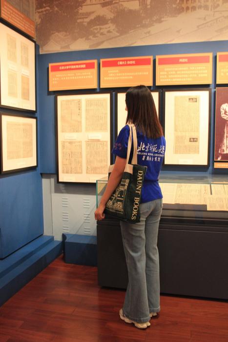 9月6日上午,实践队赴北大红楼开展实地调研。北京大学红楼,前身为北京大学校部、一院、图书馆。这里曾掀起新文化运动的高潮,是五四运动的重要策源地、北京的共产党早期组织诞生地,对推动全国范围共产党组织的建立发挥了重要作用。楼内现有“光辉伟业 红色序章——北大红楼与中国共产党早期革命活动”主题展,共展出958张图片,1357件文物,并通过现代技术赋能、志愿者引导等方式,生动展现中国共产党创建时期北京革命活动的光辉历史。