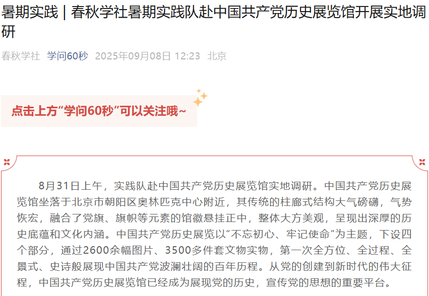 春秋学社“红色序章:探究北京地区中国共产党早期革命红色资源的保护与利用”暑期实践总结