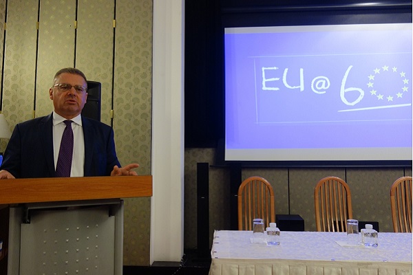 路德维特参赞与大家一同观看了介绍欧盟和捷克共和国的短片,并为大家准备了有关欧盟知识的小测试。沐浴在庄重恢宏的欧盟盟歌《欢乐颂》音乐中,同学们进一步理解了欧洲人民为谋求国家联合、世界和平所做出的不懈努力;徜徉于自然与人文编织的和谐长卷里,同学们直观地碰触到了一个五彩斑斓的捷克——她不仅有油画般优美的湖光山色,也有着底蕴深厚的历史文化名城以及富有活力的现实生活。