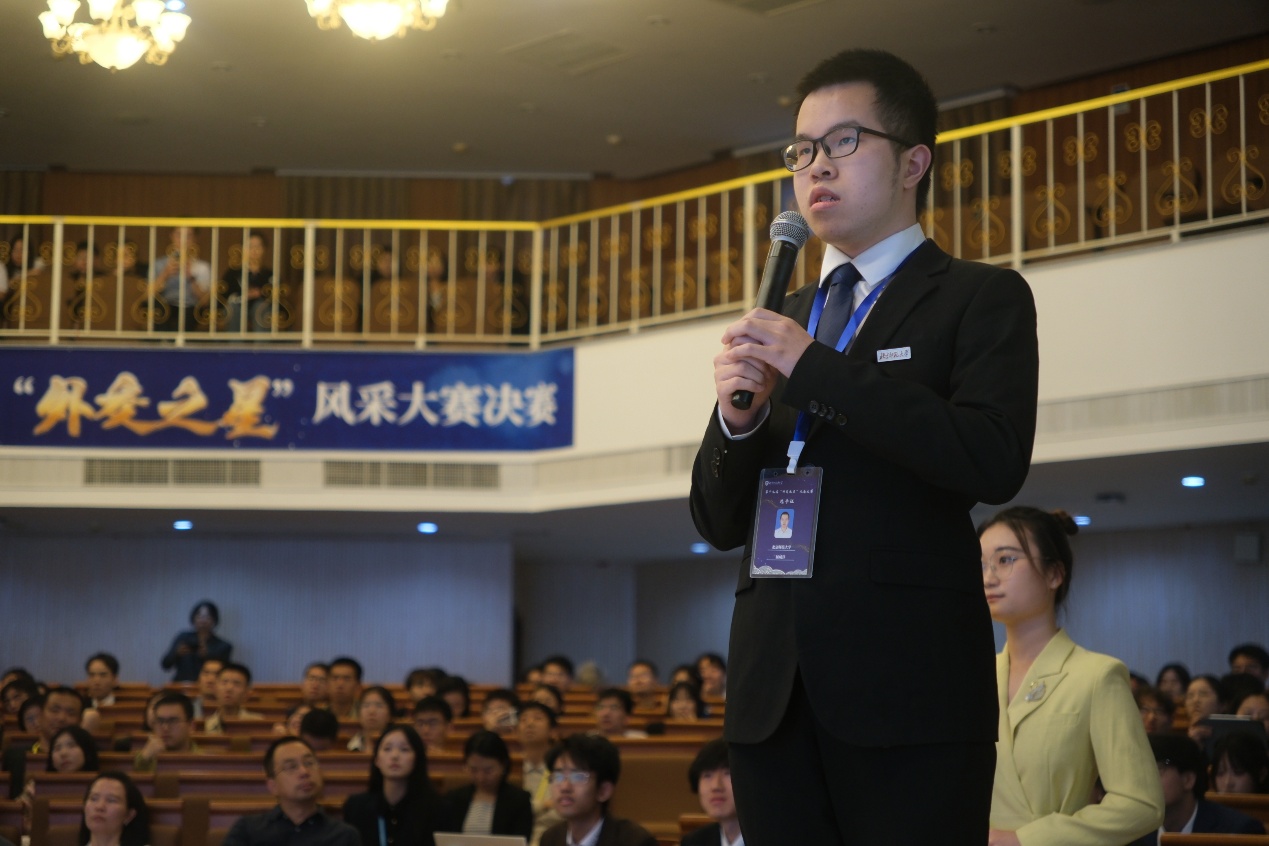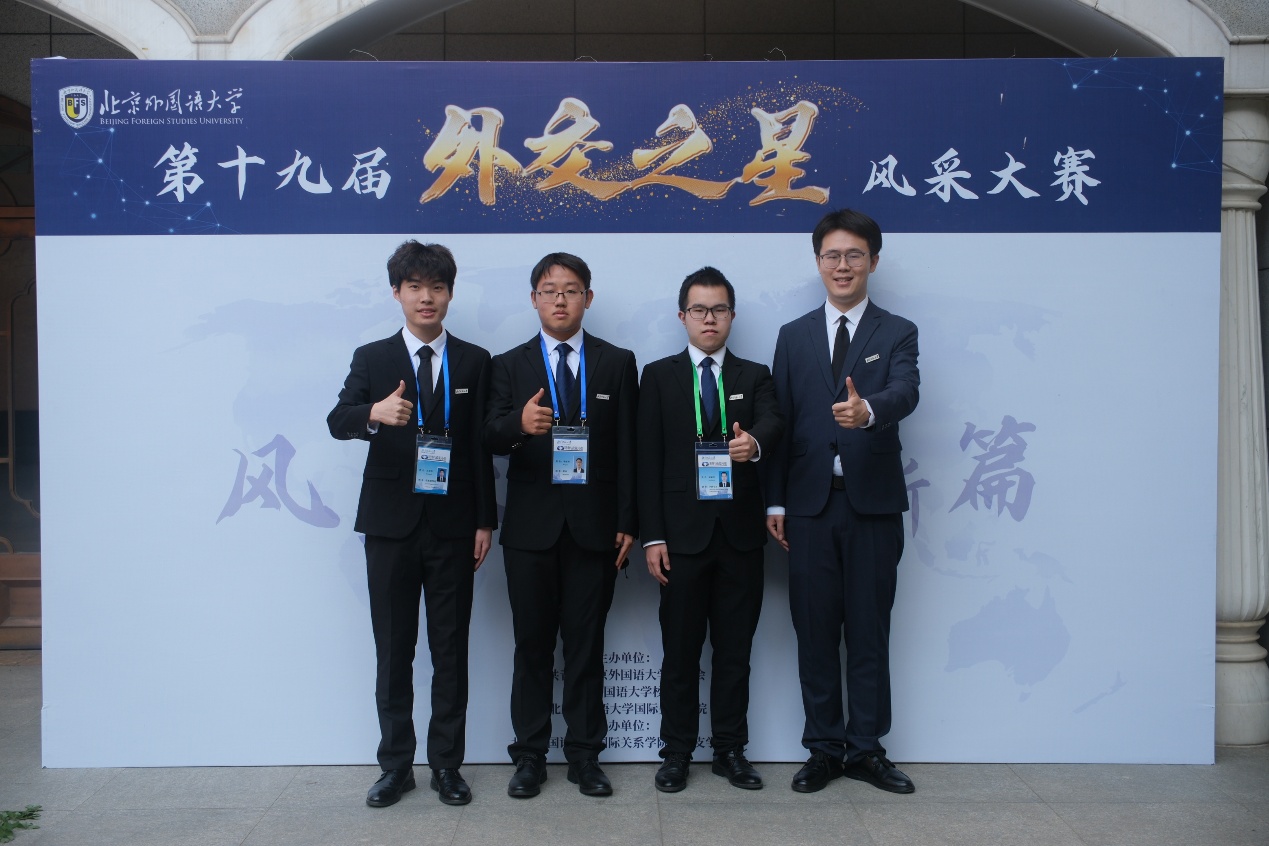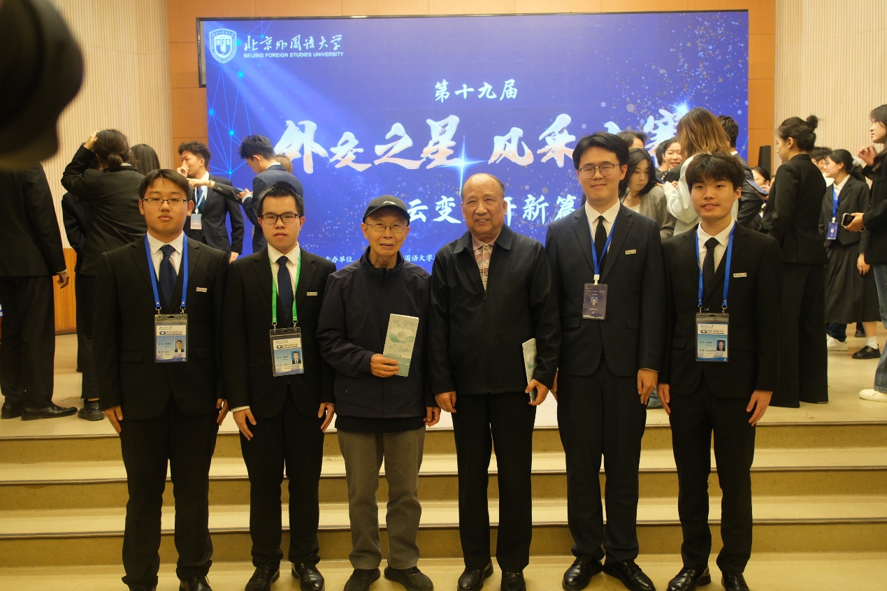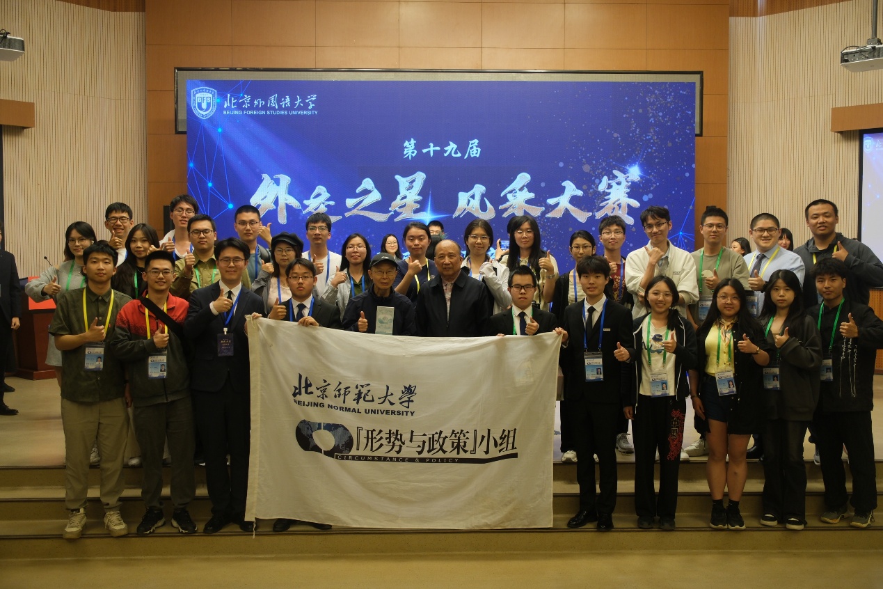 2025年5月17日晚,“风云变·开新篇”第十九届“外交之星”风采大赛在北京外国语大学举办。我院2023级本科生屈威洋、李炳科,法学院2024级硕士研究生宋锦和哲学学院2024级本科生吴雨泽应邀参加比赛,一展师大学子风采。我院“形势与政策”小组组务总监周逸峰、张熹,常务副组长余子安,秘书长赵子正,副组长龙思翰、吴自嵘,原组长助理叶子豪,秘书处顾问杨新頔,学研顾问吴怡,第十八届领导团队全体成员及部分新成员也赴现场参加了活动。
