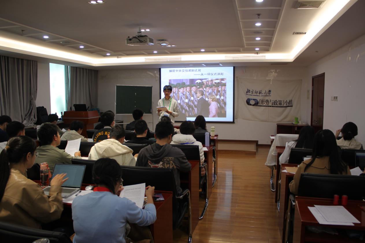 第一三七次集体学习以“捕捉中外交往阙如之处——从一场仪式讲起”为主题。通过主讲人准备的视频资料与生动风趣的讲解,同学们学习了当代外交欢迎仪式的类别和基本流程,也对仪式背后各国的政治传统和民族特色有了更多的了解。本次学习自“欢迎仪式”这个“窗口”切入,氛围轻松活泼,使同学们对外交工作的细节与内涵有了更深入了掌握。