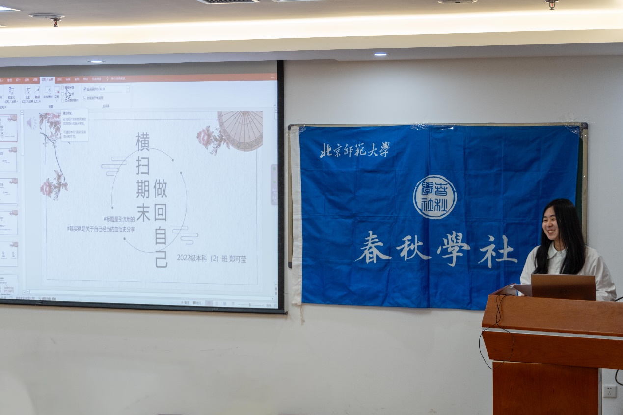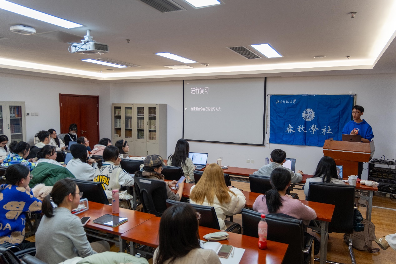 11月25日20:30,春秋学社在主楼638会议室举办了期末经验分享会,本次活动邀请到历史学院2022级本科生李濯灵、郑可莹、李晨舟三位同学作为主讲嘉宾。本次活动由春秋学社企划部肖宜佳同学主持。