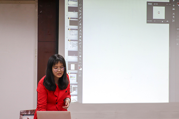 罗靖曦围绕photoshop软件的常用操作和字体组合设计两方面展开培训。同时也介绍了操作的基本规范和比较常见的素材网站。在培训期间,社员们动手实践,并对操作中的问题与罗靖曦进行了探讨。对于制作海报这一工作,罗靖曦着重强调了思路的重要性,主张大家在日常生活中多观察、多思考,主动积极地学习相关知识。最后,罗靖曦为美编们布置了排字和排版的练习任务。
