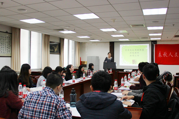 2015年3月28日下午,首都高校传媒联盟特色媒体界别新闻汇评在北京师范大学主楼A600成功举办。本次新闻汇评由历史学院《春秋人文报》承办,《春秋人文报》社长刘媛主持汇评。来自中国传媒大学、中国农业大学等六所高校十家特色媒体的30余位同学参与汇评。
