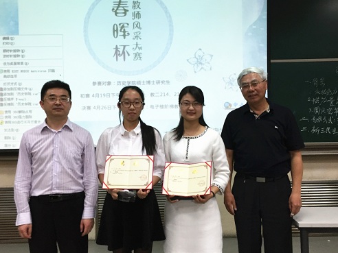 2015年4月26日下午2时,由历史学院研究生会主办、生活指导室协办的第八届春晖杯教师风采大赛在电子楼阶梯教室顺利举办。大赛邀请了历史教育教研室主任马卫东老师、历史教学论教研室主任郑林老师、我院2014级博士蒋丹丹与叶维维,以及第七届教师风采大赛一等奖得主张晓蓉担任评委嘉宾。十名选手经过激烈的角逐之后,2014级硕士刘宇彤、邢晓燕夺得头筹。