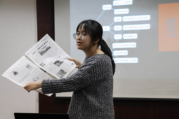 会上,主编景悦总结了春秋人文报社上一阶段的工作,强调记者规范认真的态度应当体现在每一处细节里;记者对文字的打磨和责编与记者的双向交流应当落实在日常工作中。文编副主编王雨璇对记者工作进行了更具针对性的讲评。她指出,记者与责编在工作中应加强合作和版面意识;记者应力求实现有层次、多角度的思考和有节制、有效率的表达。