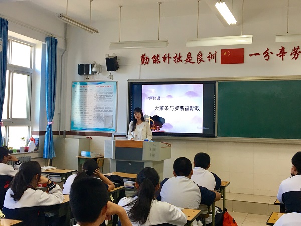 2017年9月28日下午,历史学院2015级硕士生第一党支部部分党员前往昌平区中国政法大学附属学校,以“讲好中国故事”为主题,在高一(1)班和高二(1)班组织开展教学实践活动。